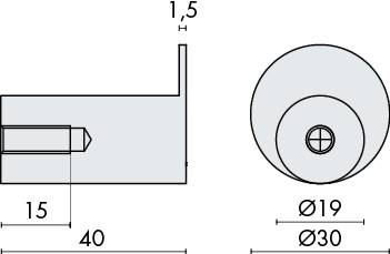 Patère mural D=30 / L=40 mm série "Project". Finition inox brossé AISI 304